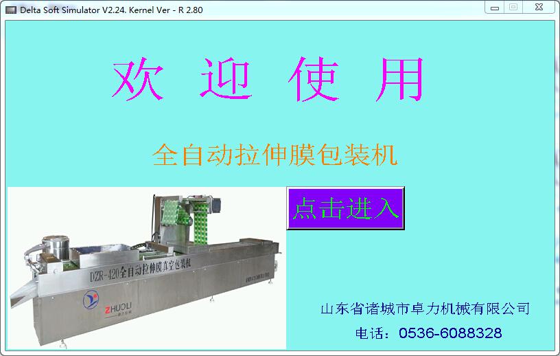 1、給真空包裝機(jī)供電以后,稍等片刻人機(jī)界面就會(huì)顯示“開始畫面”?!伴_始畫面”包含設(shè)備名稱、公司信息等,在中間位置出現(xiàn)一個(gè)【點(diǎn)擊進(jìn)入】觸摸鍵。