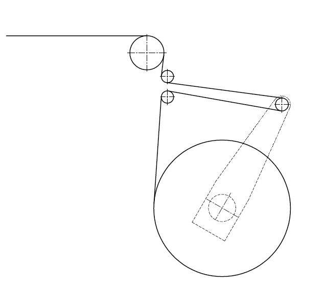 卷料回收方式由卷料電機(jī)、檢測(cè)開關(guān)等組成。自然狀態(tài)下電機(jī)轉(zhuǎn)動(dòng),當(dāng)擺臂下降觸碰到檢測(cè)開關(guān)后,電機(jī)停止轉(zhuǎn)動(dòng)。下一個(gè)步進(jìn)后,擺臂上揚(yáng),電機(jī)轉(zhuǎn)動(dòng),擺臂下降碰到檢測(cè)開關(guān),如此反復(fù)。邊料纏繞方式如右圖所示。